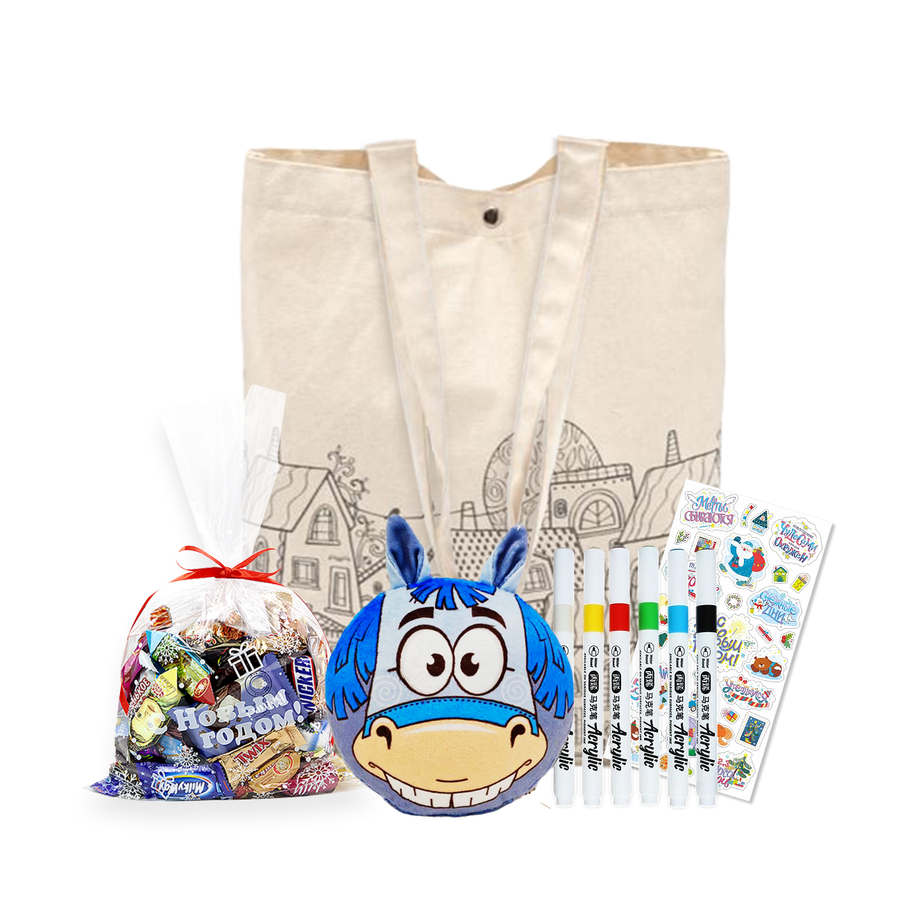 Мягкий символ года – не просто игрушка, но верный друг днем и удобная маска для сладких снов ночью. Удобная сумка-шоппер с веселым принтом вдохновит ребенка создавать уникальные дизайны благодаря маркерам. А яркие тематические наклейки станут чудесным украшением блокнота или чехла для смартфона настоящего маленького творца.