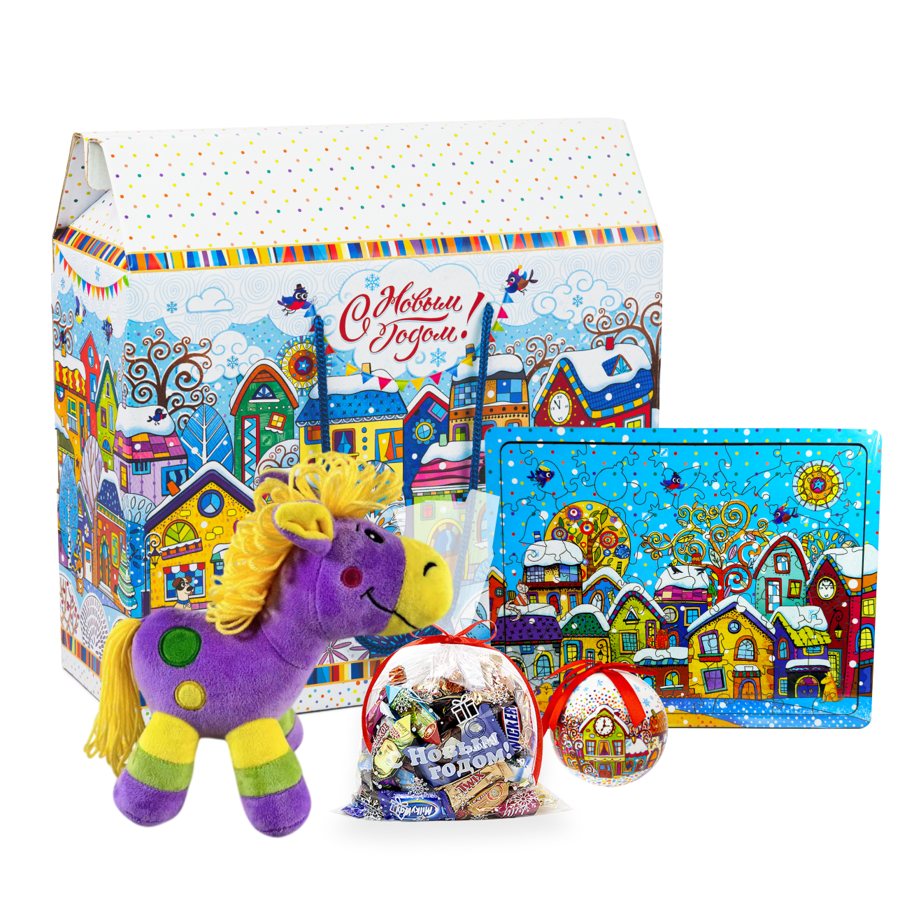 Новогодняя сказка начинается здесь! Отличный подарок для ваших малышей — яркая новогодняя коробка со множеством чудес.